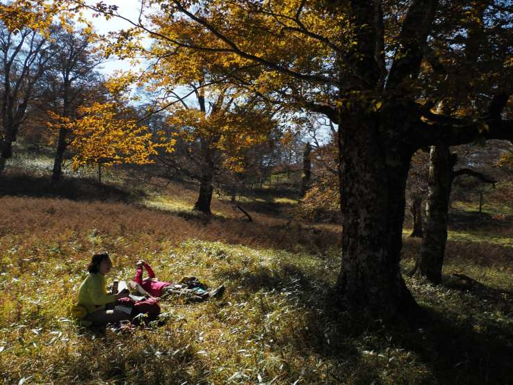黄金色のブナに会いに大ブナの駄場へ、その2、猿田峠からの登りで早くもブナが黄金色になっていた